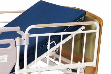為了減輕坐輪椅的人員或者看護(hù)人員的負(fù)擔(dān)可 以自由升降。只要操作手控器來控制床的高度可 以實(shí)現(xiàn)25cm~61cm的無級升降調(diào)節(jié)。